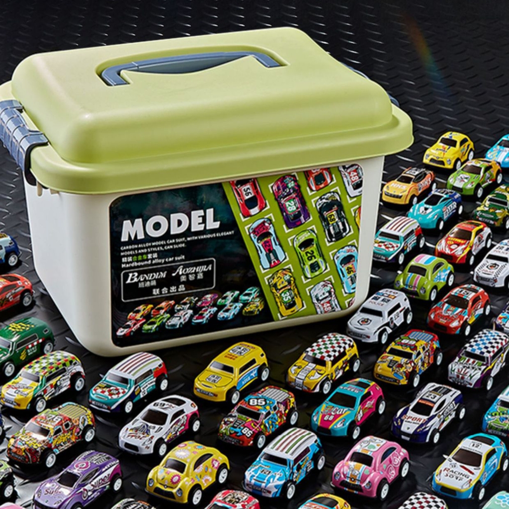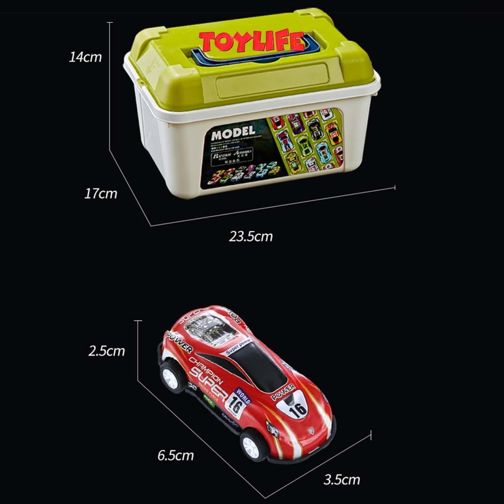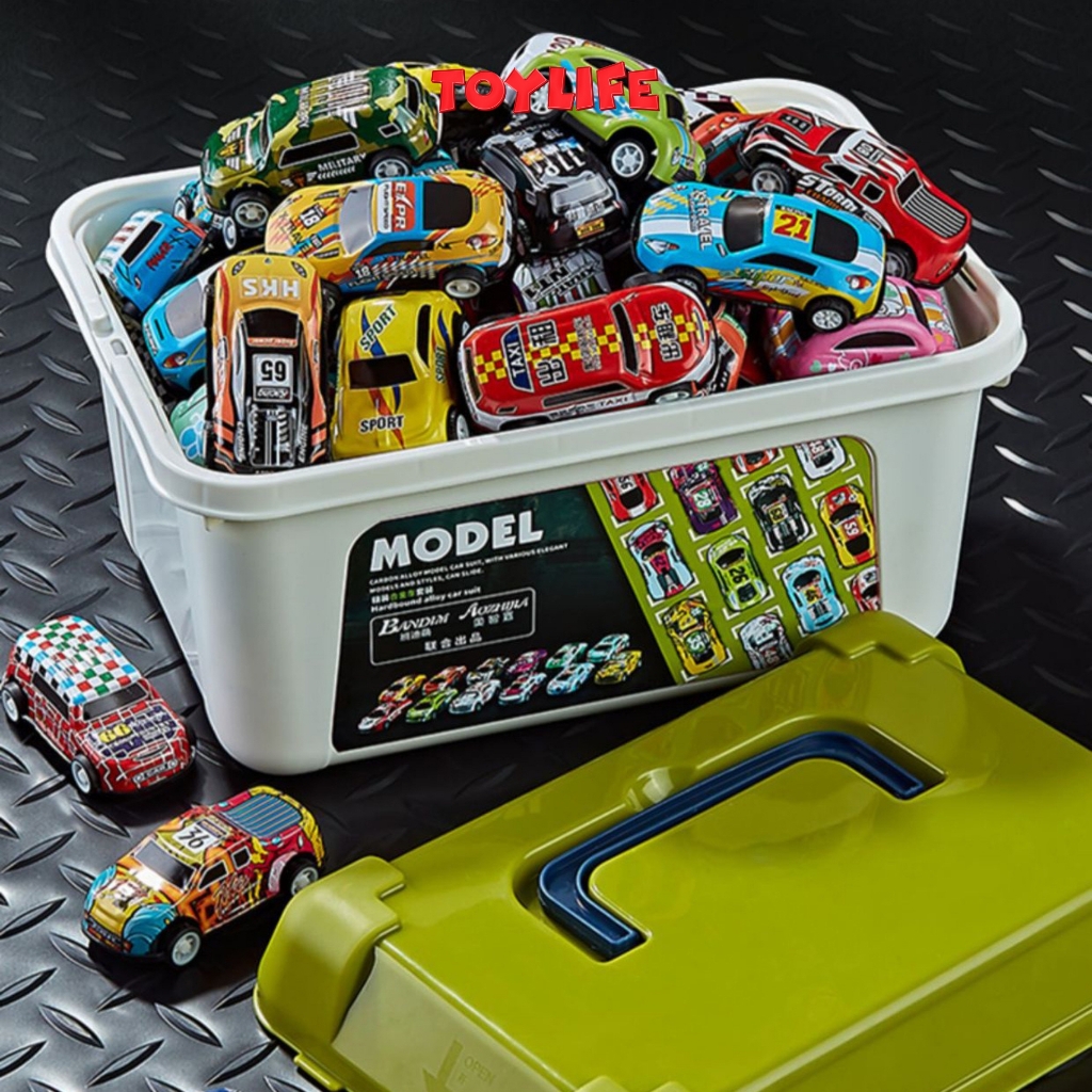 Bộ xe ô tô đua đồ chơi lên cót hợp kim 30 chi tiết kèm hộp đựng, thùng đồ chơi ô tô nhiều màu cho bé TOYLIFE