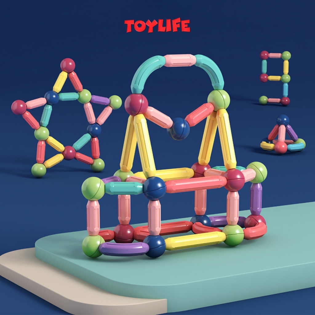 - Đồ chơi xếp hình nam châm từ tính giúp bé tiếp cận với các hình ảnh, màu sắc, toán học.
