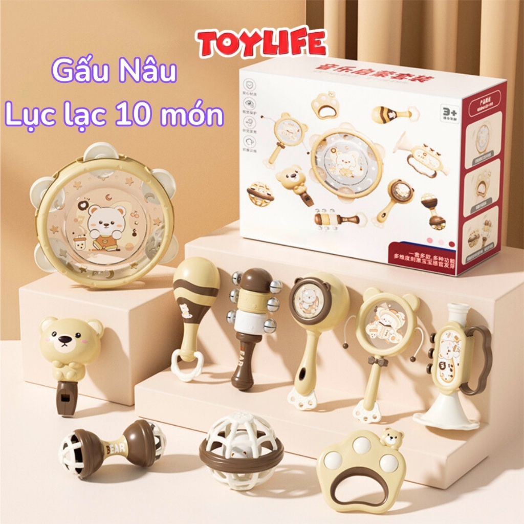 Đồ chơi lục lạc gặm nướu cầm tay 10 món an toàn cho bé xúc xắc gặm nướu cao cấp sơ sinh phát triển giác quan TOYLIFE